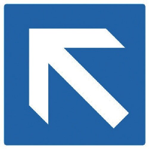 表示内容:青地白矢印ななめ | 縦(mm):100 | 横(mm):100 | 厚さ(mm):0.12 | 摘要:粘着シール | その他仕様:5枚1組…