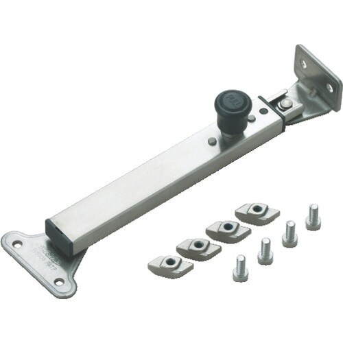 | 注意事項 | ※本製品を扉以外のストッパーとして使わないでください。取付場所や用途によってストロークに余裕をもたせてください。扉1枚に対して1本使いでご使用ください。扉高さ・扉開き角度に応じて、ブラケットの位置を適宜に決められます。ロックの解除は扉を支えながら行ってください。 |