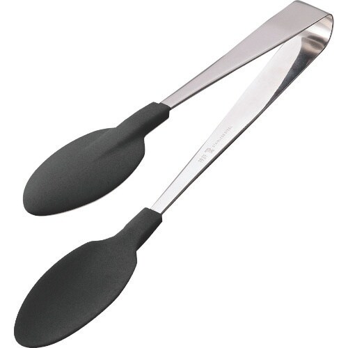ステンレススチール・先端には柔軟性があり滑りにくい素材のエラストマー樹脂を使用して いますので、食品を優しく包むようにつかめます。