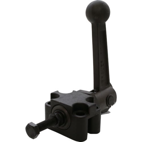 構成部品を全て表面焼入れ処理することで高い耐久性を実現しています。2段カムの採用により、クランプの速度を最適にしています。高さ方向にクリアランスが無い場合など、ハンドルを倒して使うことも可能です。 |