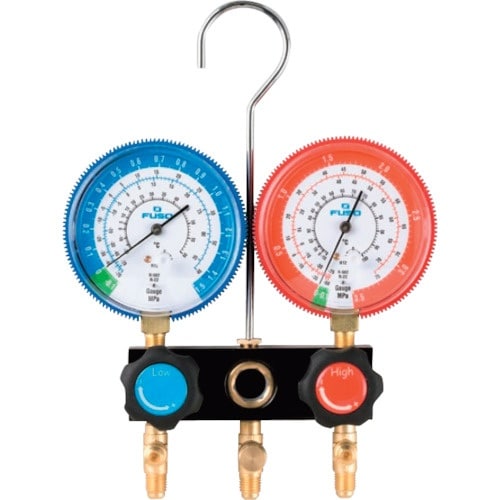 ニードルバルブ式なので微調整ができます。脈動振動吸収式ゲージなので針の振れが少なく読みとりやすいゲージです。冷凍空調設備の冷媒ガスの充填回収に。