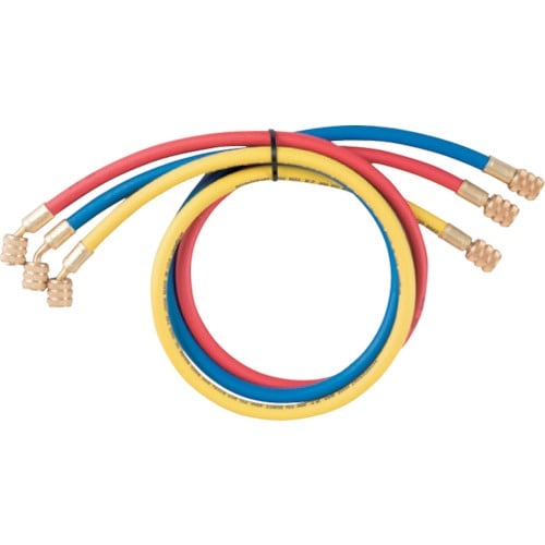 長さ(cm):150 | 常用圧力(MPa):5.5 | 破裂圧力(MPa):27.5 | セット内容:赤・青・黄 | その他仕様:R410A・R32…
