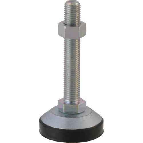 受け皿にクロロプレンゴムを焼き付けています。ボルト底部に+の矢打を施してありますので取り付けが容易です。ネジ軸は回転し、多少傾きます。床面を傷つけませんので、高級床材上などでもご使用いただけます。 |
