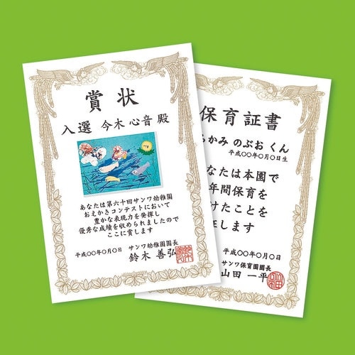 A5サイズのオリジナル賞状が必要な数だけ簡単・きれいに作れる用紙です。オリジナル賞状が簡単にできる便利な用紙です。必要なときに必要な数だけ作成できます。 |