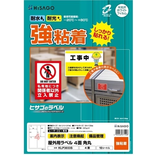 HISAGO ラベル 屋外用ラベル A4 4面 KLP3033S 1冊(10枚)