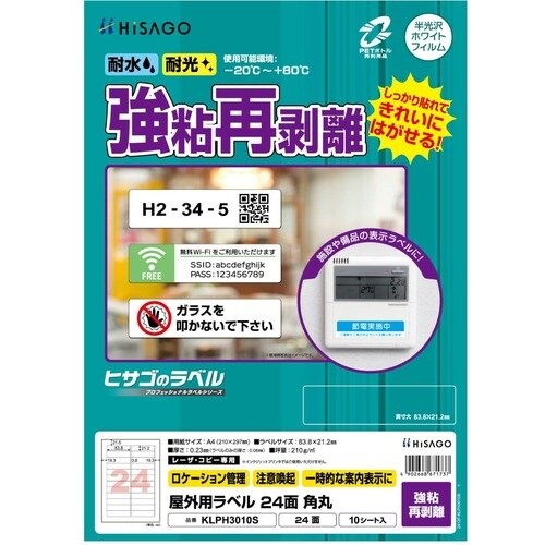 HISAGO ラベル 屋外ラベル強粘再剥離 24面 KLPH3010S 1冊(10枚)