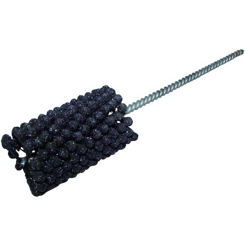 砥石をコーティングした玉状砥材が、樹脂軸によりしなり、凸凹の内面にもフィットします。円筒内部のバリ取り、内面研磨に最適です。