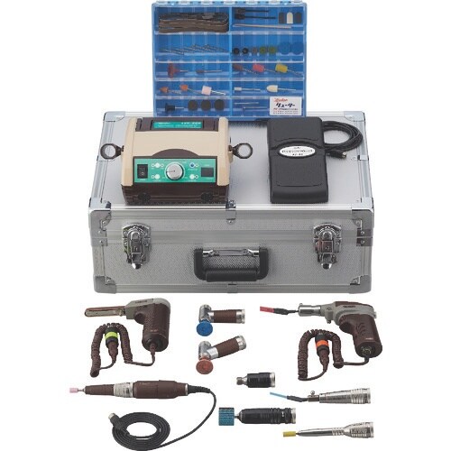 パワーユニット・モーターユニット・小型ベルトサンダー・レシプロ・その他ハンドピース・フットスイッチ・先端工具セットなどを取り揃え、ほぼ全ての要望を実現できるデラックスセットとなります。 |