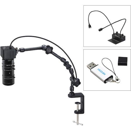 新定番USBカメラ × 作動距離自在のズームレンズ 自由にカメラを固定できるアーム(スポット照明付) 価格と性能を両立した300万画素USBカメラのセットです。フレキシブルアームのスポット照明付き。 |