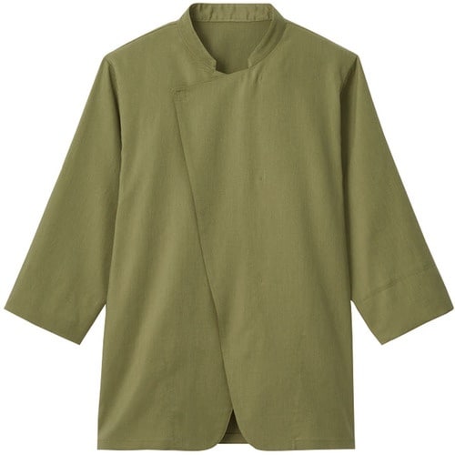 飲食店スタッフにおすすめの、七分袖の男女兼用ショップコートです。軽くて動きやすい涼感素材を使用し、快適な着心地を実現。ドライタッチの快適な肌ざわりと、洗濯耐久性に優れた紡績糸を採用しています。 |