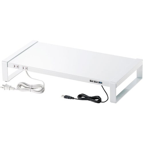 SANWA 電源タップ+USBハブ付き机上ラック(W500) MRLC204WN 1台
