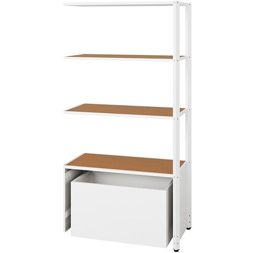 NAIKI シェルフラック(下段ボックス メレム MU型/天板:ミディアムウォールナット 本体:サテンホワイト/W925×H1813 MU0918RUSSWMW 1台 A079-1547