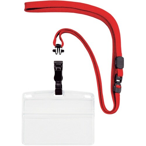 ワンタッチで取り外しができる脱着式です。タッグ名札としても使用できる2WAYタイプです。新設計のオール樹脂製です。安全装置・長さ調整付です。 |