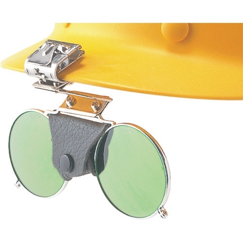 MP型ヘルメットにワンタッチで取付可能です。使用しない時には跳ね上げておけるので視界の妨げになりません。フレームがないため下方視界がよく足元に不安がありません。ガス溶接などに。 |