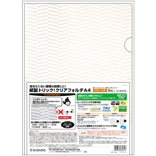 ヒサゴ HISAGO クリアフォルダ 紙製トリック!クリアフォルダ A4 パターン大 OP2472S 1袋(3枚) A079-5470