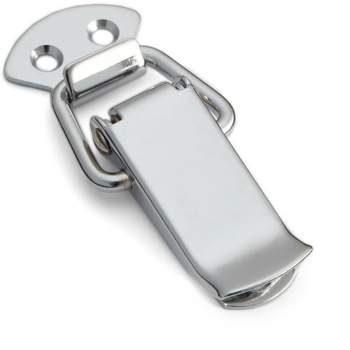 レバーはばねの力で自動的に閉じるため、ロック解除時でもぶらつきません。南京錠や封印具を取り付けるための鍵穴付タイプと、鍵穴なしタイプがあります。