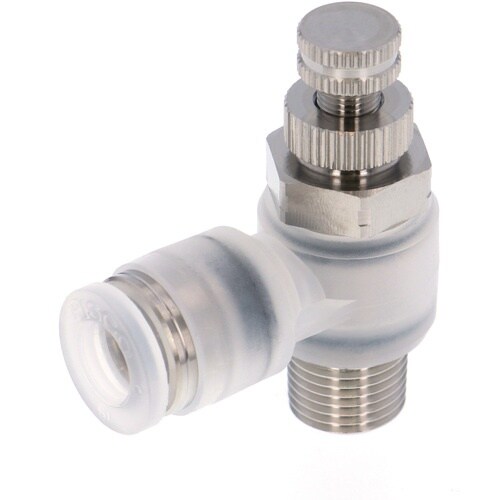 クリーン環境用PP樹脂ワンタッチ継手内蔵型ニードル絞り弁(金属部SUS304)