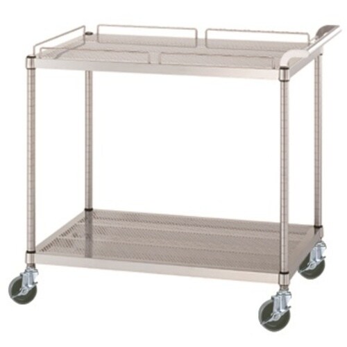 シンコー ステンレスワゴン(SUS430) 天地2段タイプ パンチング棚 ガード付1段ガード無1段 φ100ウレタン車 750×600×800 PM117560U100 1台