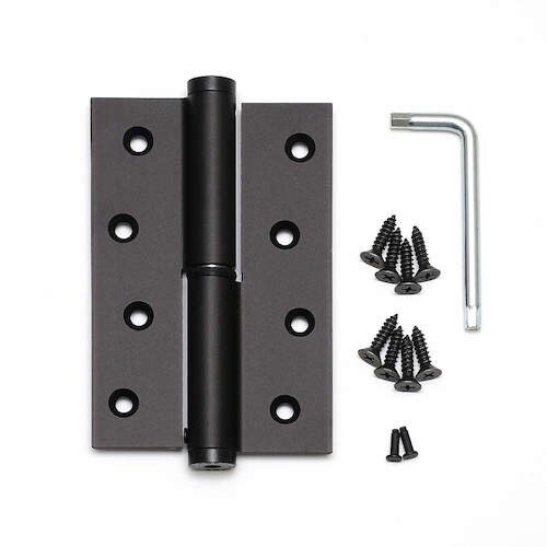 スプリングの力で、扉が自動的に閉まります。スプリングの強さを調節できます。扉の取り外しが容易におこなえます。 |