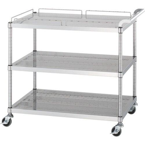 シンコー ステンレスワゴン(SUS430) 天地3段タイプ パンチング棚 ガード付1段ガード無2段 φ75ウレタン車 900×600×800 PM129060U75 1台