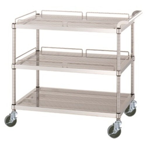 シンコー ステンレスワゴン(SUS430) 天地3段タイプ パンチング棚 ガード付2段ガード無1段 φ100ウレタン車 600×450×800 PM216045U100 1台