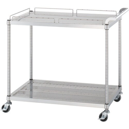 シンコー ステンレスワゴン(SUS304)天地2段タイプ パンチング棚 ガード付1段ガード無1段 φ75ウレタン車 750×600×800 PMN117560U75 1台