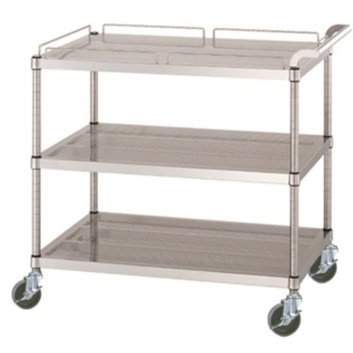 シンコー ステンレスワゴン(SUS304)天地3段タイプ パンチング棚 ガード付1段ガード無2段 φ100ウレタン車 600×450×800 PMN126045U100 1台