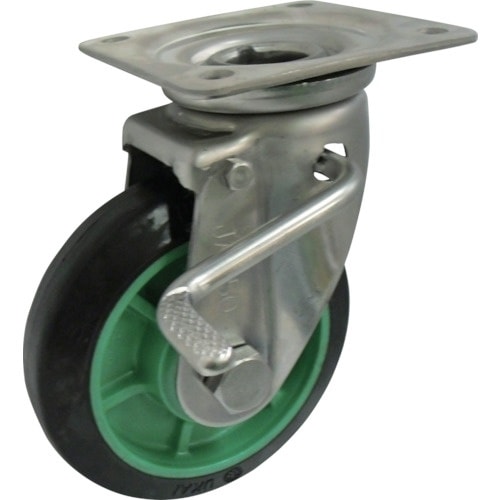 ラジアルベアリングを使用しておりますので、回転がスムーズです。樹脂製ホイルを使用しているため、軽量で、錆びに強いキャスターです。ステンレス金具を使用し、耐食性・耐水性に優れております。 |
