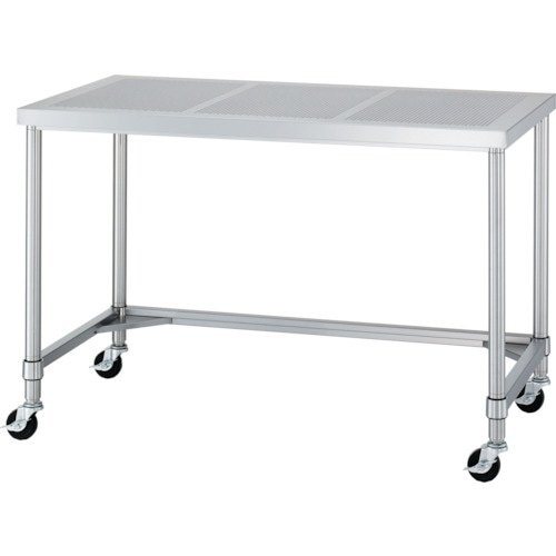 シンコー ステンレス(SUS430)パンチング作業台三方枠キャスター付 φ75ウレタン車 1200×750×800 PWTC12075U75 1台