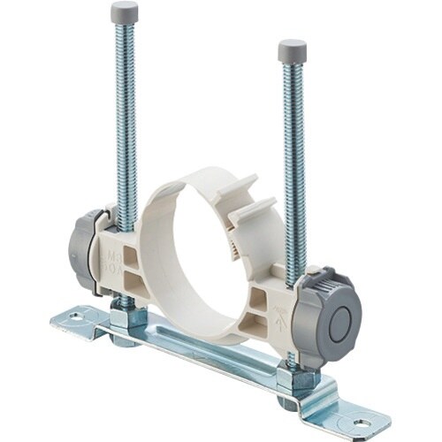 工具無しで管の固定、高さ調節ができます。排水管用の支持金具。天井配管でも使用できます。