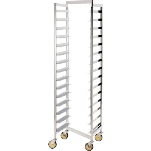 トレーや樹脂コンテナなどの容器を多段階に収納し運搬・保管できます。本体がZ型ですので、未使用時にはネスティングすることで省スペース収納が可能です。 |