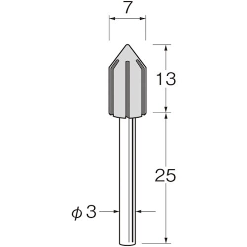 幅(mm):13 | 最高使用回転数(rpm):30000 | 外径(mm):7 | 軸径(mm):3 | 軸長(mm):25 | 単位:1袋(1本)