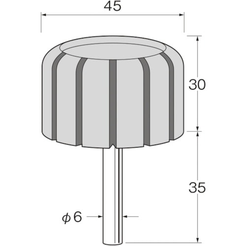 幅(mm):30 | 最高使用回転数(rpm):8500 | 外径(mm):45 | 軸径(mm):6 | 軸長(mm):35 | 単位:1袋(2本)