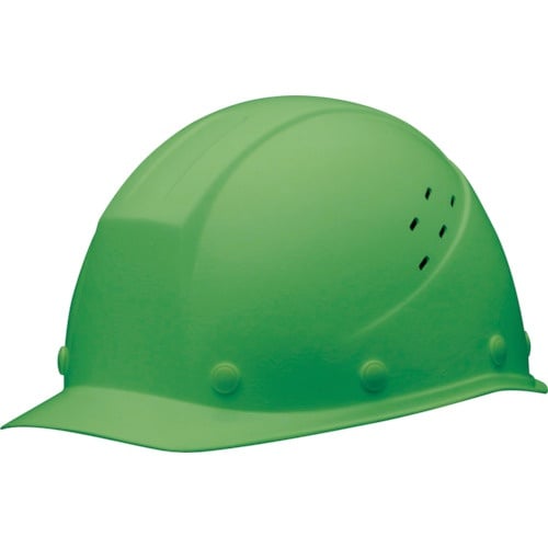 ムレを軽減する通気孔付です。脱げ防止機構が前後からの衝撃による脱げとズレを防ぎます。サイズ合せが簡単で、頭部にぴったりフィットするRAバンド仕様です。飛来・落下物用。 |