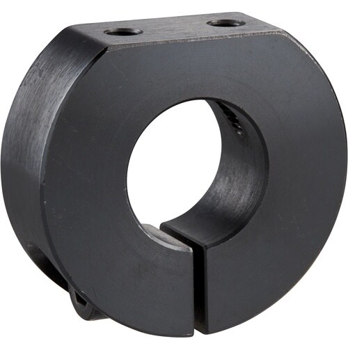 締結力の強いスタンダードスリットカラーです。面で締め付けるため締結力が強く、シャフトに傷が付きにくいタイプです。Dカット面のネジ穴を利用してブラケットなどを取り付けることができます。 |
