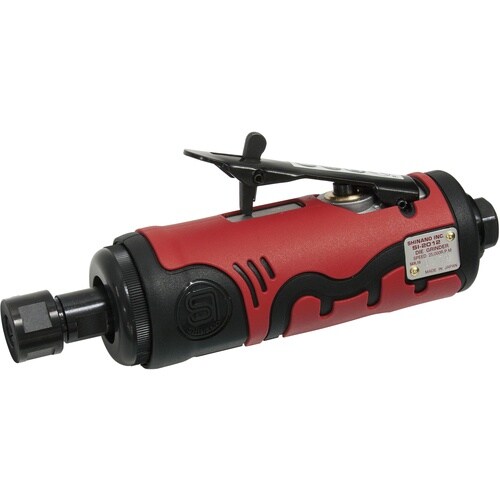 冬場も作業者に冷たさを感じさせない樹脂ハウジングカバー付です。切削粉を飛ばさない後方排気です。回転調節内蔵式です。金属加工バリ取り作業に。 |