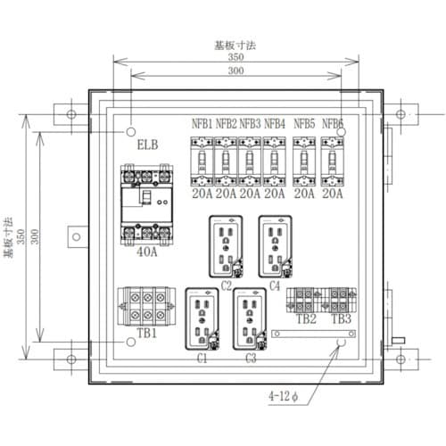 仮設電灯分電盤の標準型です。大阪府の自社工場で設計、製造しています。部分的な修正・変更から、フルオーダーまで、別作対応可です。工事現場のコンセント、照明や工具等の電源に。 |