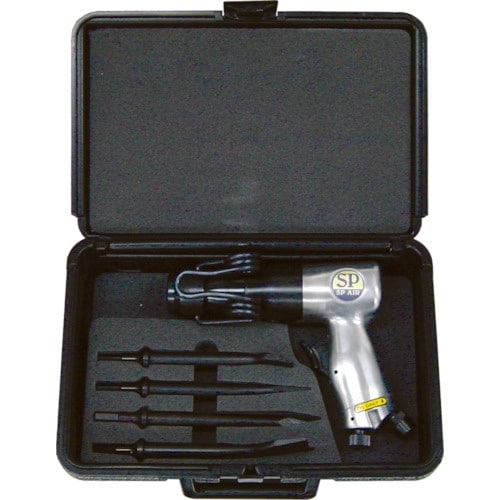 エアーハンマーSP1410Rとチゼル4本のボックスセットです。硬質スチール製シリンダーを使用しています。チゼルの交換もスピーディーです。耐久性を上げたクイックチェンジリテーナー付です。 |