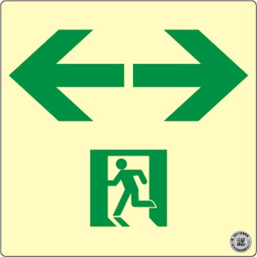 高輝度蓄光式誘導標識の最上級認定基準S50級を取得しています。安全標識板JIS規格Z9107の高輝度基準をクリアした蓄光標識です。白色蛍光灯200ルクス20分間照射で約12時間視認可能です。 |