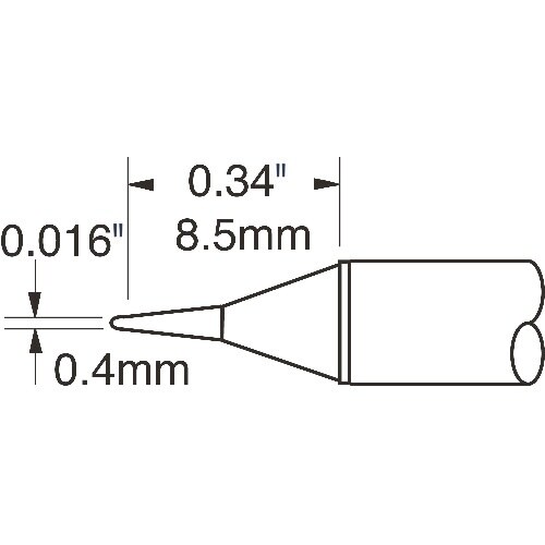 コテ先名称:B型 | その他仕様:496℃ B型 0.4mm x 8.5mm パワーチップ | 単位:1本