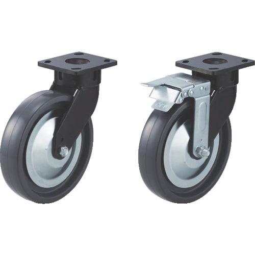 ブレーキ付と4ポジション旋回ロック(別売品使用)が新しく加わりました。プレートと本体の取付部は、キングピンを使用しない特殊な構造です。 |