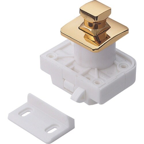 つまみを押し込むとフラットになるため、デザイン性に優れ、安全です。またその際、スライドラッチが扉をロックします。仮錠ラッチのばね弾性により、閉扉時につまみを押し込まなくても、簡易的に扉を保持します。 |