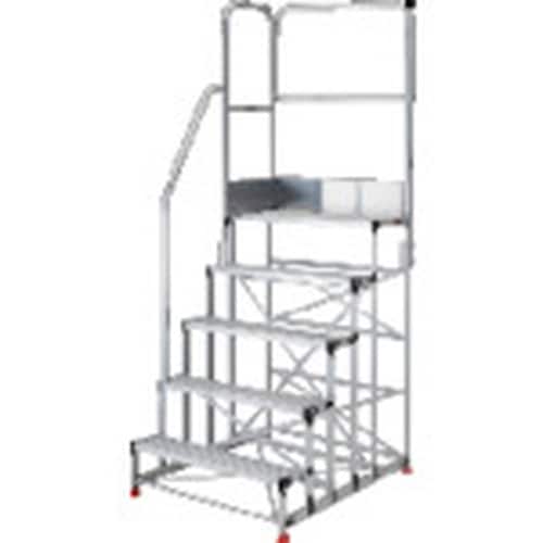 TRUSCO アルミ製作業用踏台 5段 高さ1.25m 天板寸法1000×400 段高250mm 階段片手すり天場二方付き TSF510125TKL250 1台