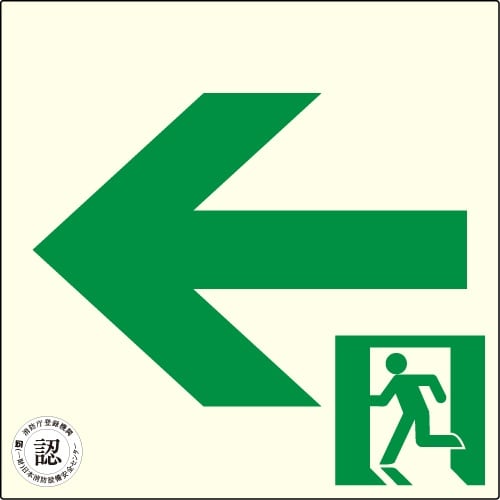 アルファフラッシュ 非常用標識 中輝度蓄光式誘導標識 ステッカータイプ 消防認定品(NP−013号) ←非常口 TSN962 120mm×120mm 厚さ0.25mm TSN962 1枚