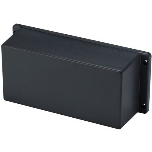 難燃性プラスチックケースでフランジ足付のため設置が容易です。基板取付用のボスが付いています。