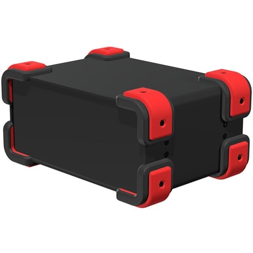 コーナーガード付のアルミケースです。コーナーガードは弾力性のあるシリコン製で耐衝撃性があります。また滑りにくいのでゴム足の役割にもなります。 |
