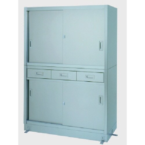 シンコー ステンレス保管庫 二段式ベース付 VD型 (引出・上下ステンレス戸) 1200×450×1750 VD12045 1台