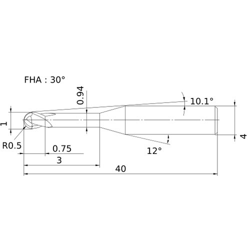 刃数ZEFP(枚):2 | 切削径DC(mm):1 | ボール半径RE(mm):0.5 | 最大切込みAPMX(mm):0.75 | 使用可能長さLU…