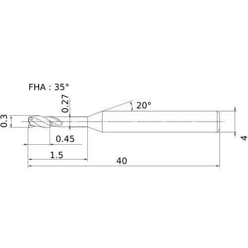 刃数ZEFP(枚):3 | 切削径DC(mm):0.3 | 最大切込みAPMX(mm):0.45 | 使用可能長さLU(mm):1.5 | 機能長さL…