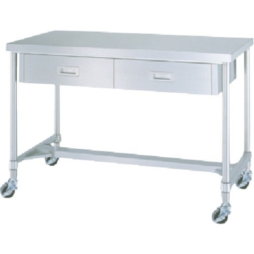 シンコー ステンレス(SUS430)作業台片面引出付H枠キャスター付 φ75ウレタン車 1200×750×800 WDHC12075U75 1台
